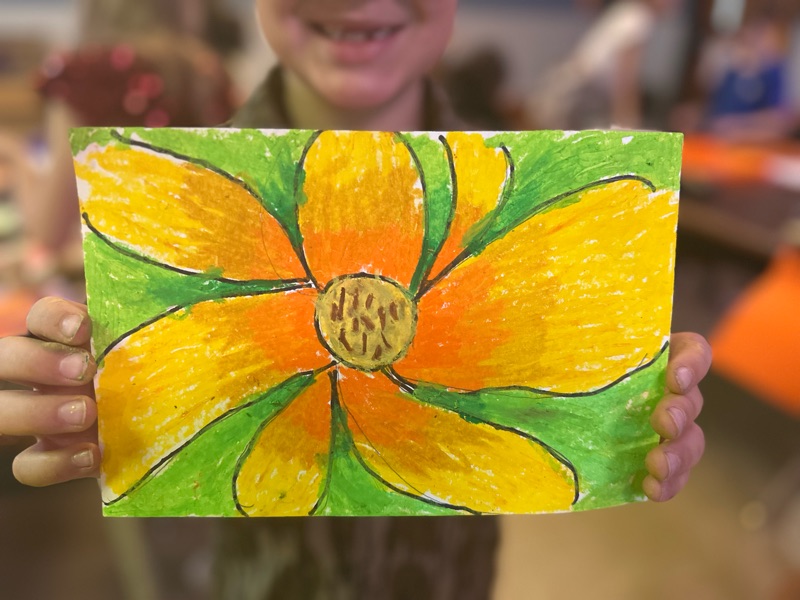In this lesson, our young artists explored how to turn a simple flower into a bold, eye-catching masterpiece—just like Georgia O'Keeffe! Known for her large-scale flower paintings, O’Keeffe taught us that when we zoom in close, even ordinary things can become extraordinary.