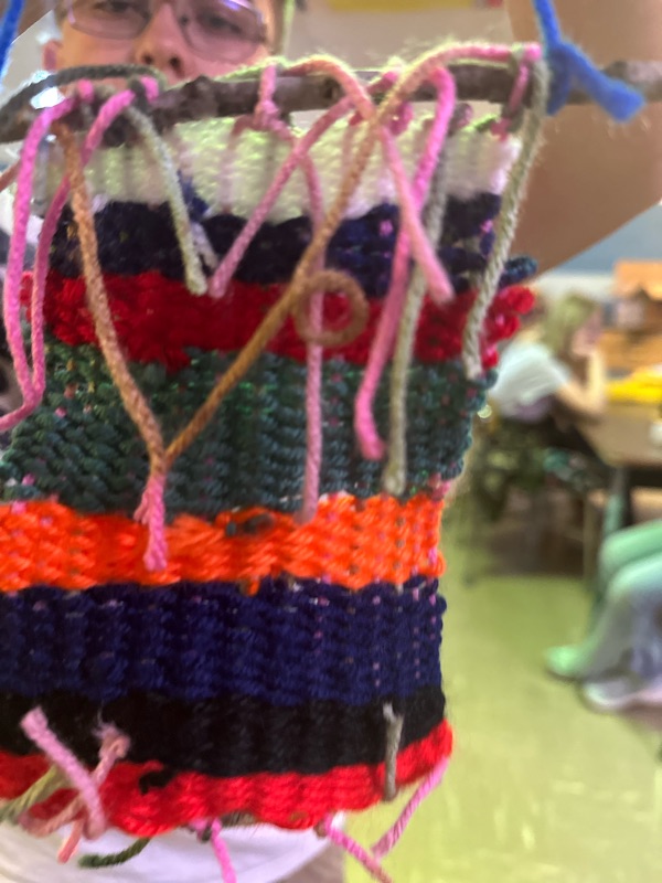 This week in art, our students explored finger weaving—a simple and exciting way to create colorful woven chains using just yarn and their hands! This hands-on activity helps students learn about patterns, coordination, and creativity while having fun with bright colors.