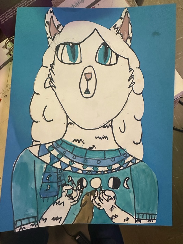 Next, we traced our lines with Sharpie to make the shapes stand out clearly. Then came the fun part—oil pastel blending!
